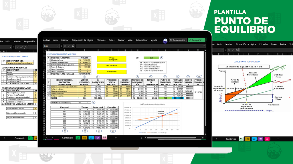 La plantilla Excel editable “Punto de Equilibrio” es una herramienta para calcular el punto en el que los ingresos igualan a los costos, determinando así el umbral en el cual la empresa no tiene pérdidas ni ganancias. Con esta plantilla, tomar decisiones financieras fundamentadas se vuelve más accesible y eficiente.